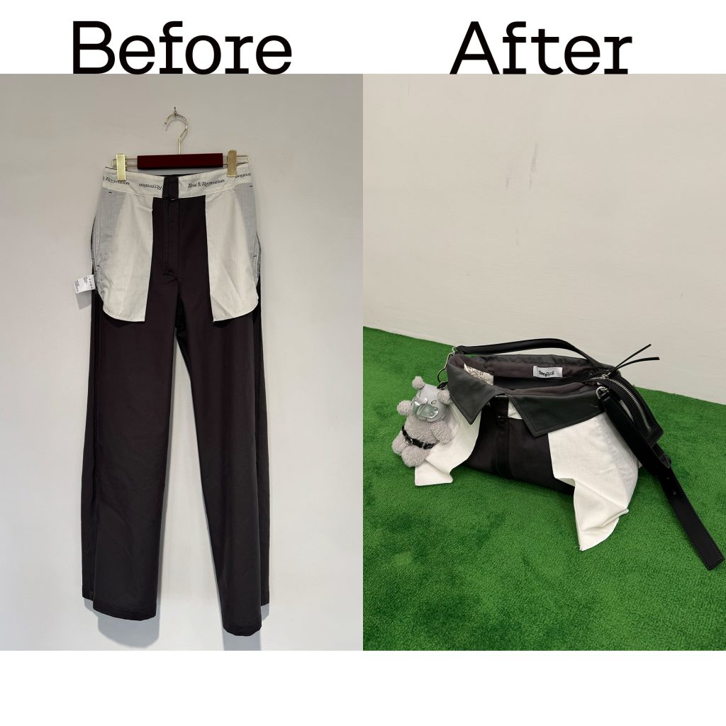 在本次工作坊中,参与者将以一条旧裤子为起点,在裁剪与结构重组中重新理解服装的生成逻辑。在专业裁缝指导下,结合高品质五金配件、肩带与内衬系统,于两小时内完成一件可被持续使用的手袋作品。工作坊提供两款包型设计可供选择,兼具明确的时尚形态与日常功能,同时保留旧物本身的质地与性格。